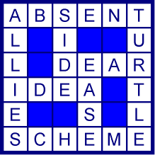 with words reading the same down as across. Alphabeticaljigsaw: A crossword with exactly 26 answers, each